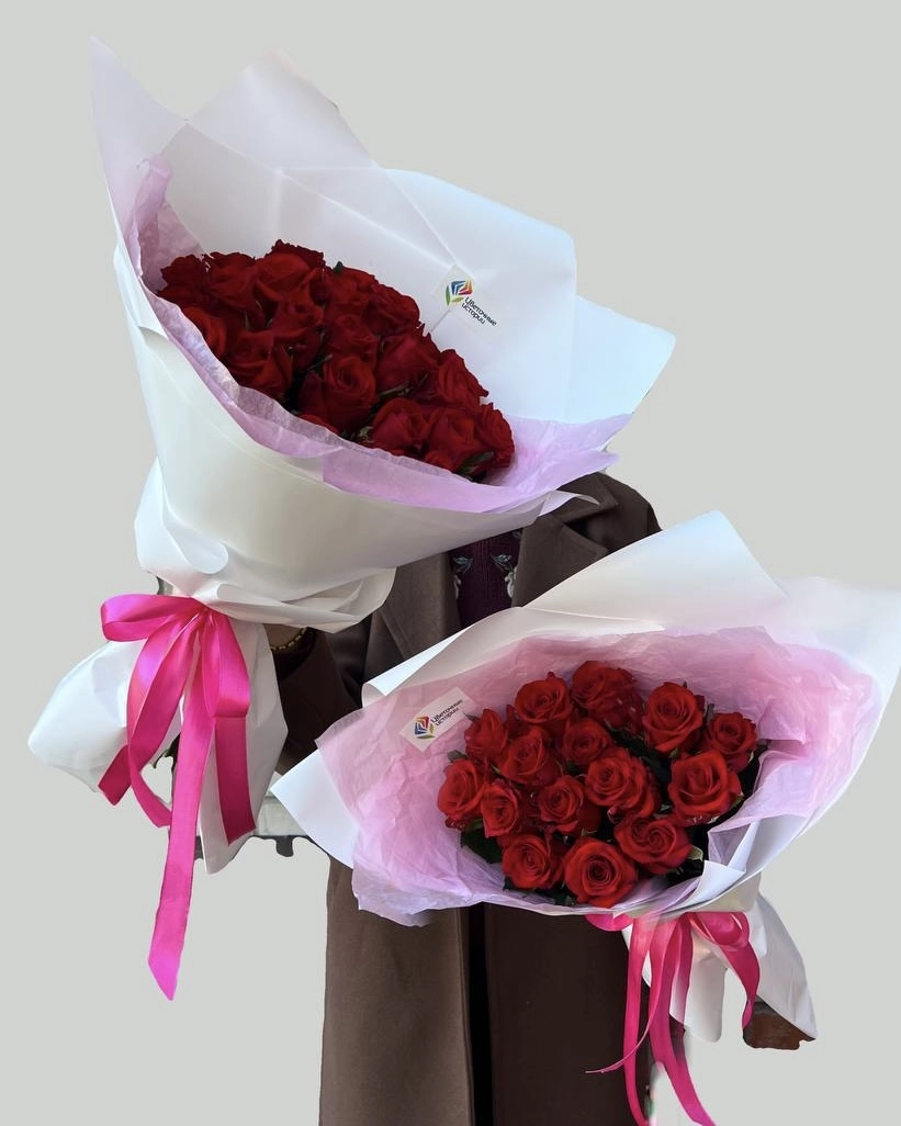 Состав букета: Роза 50/60 см (Россия): 15 шт