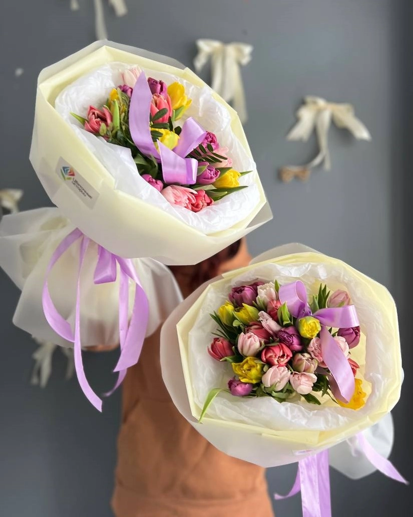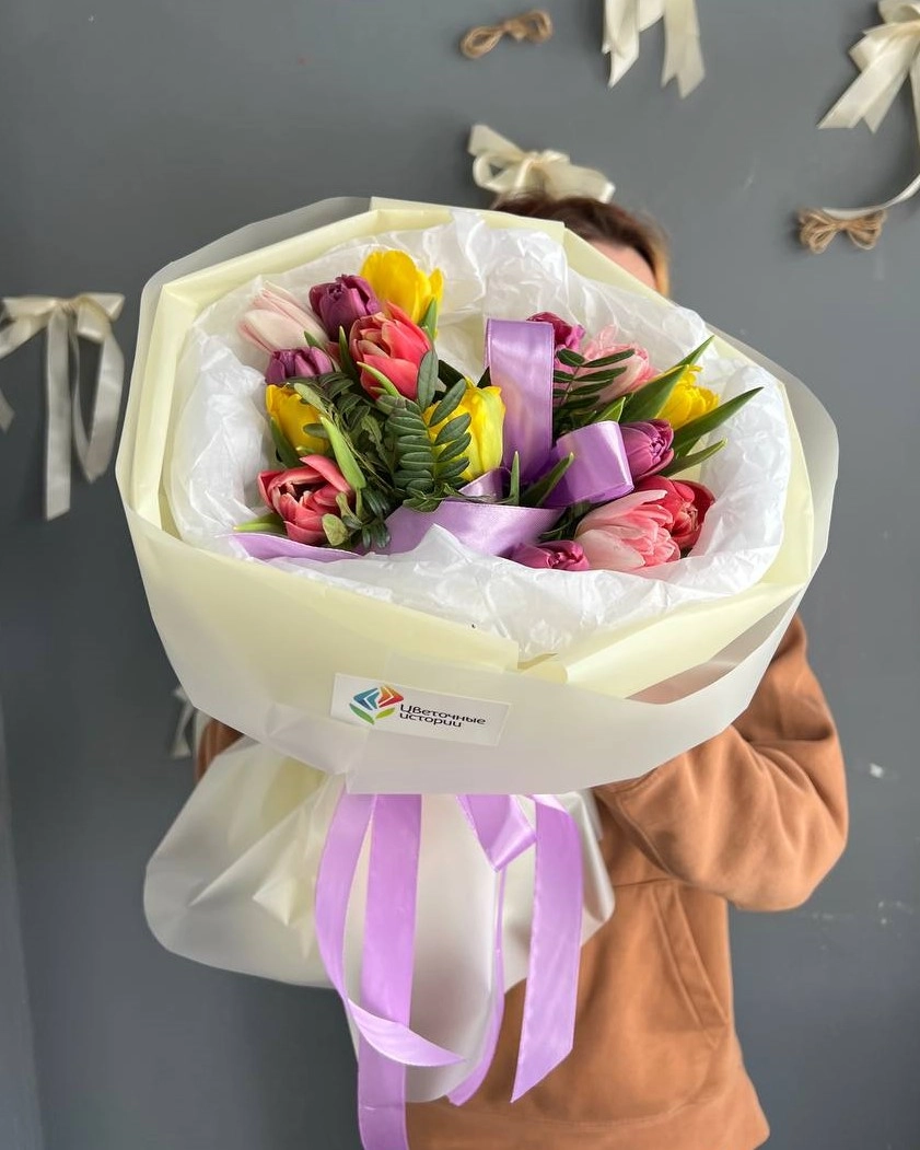 Состав букета: Тюльпан пионовидный: 15 шт, Писташ: 1 шт