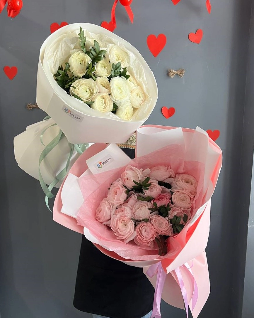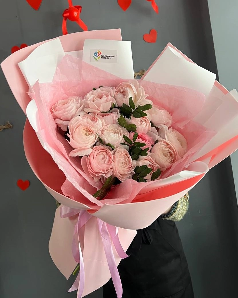 Состав букета: Ранункулюс: 15 шт, Писташ: 3 шт