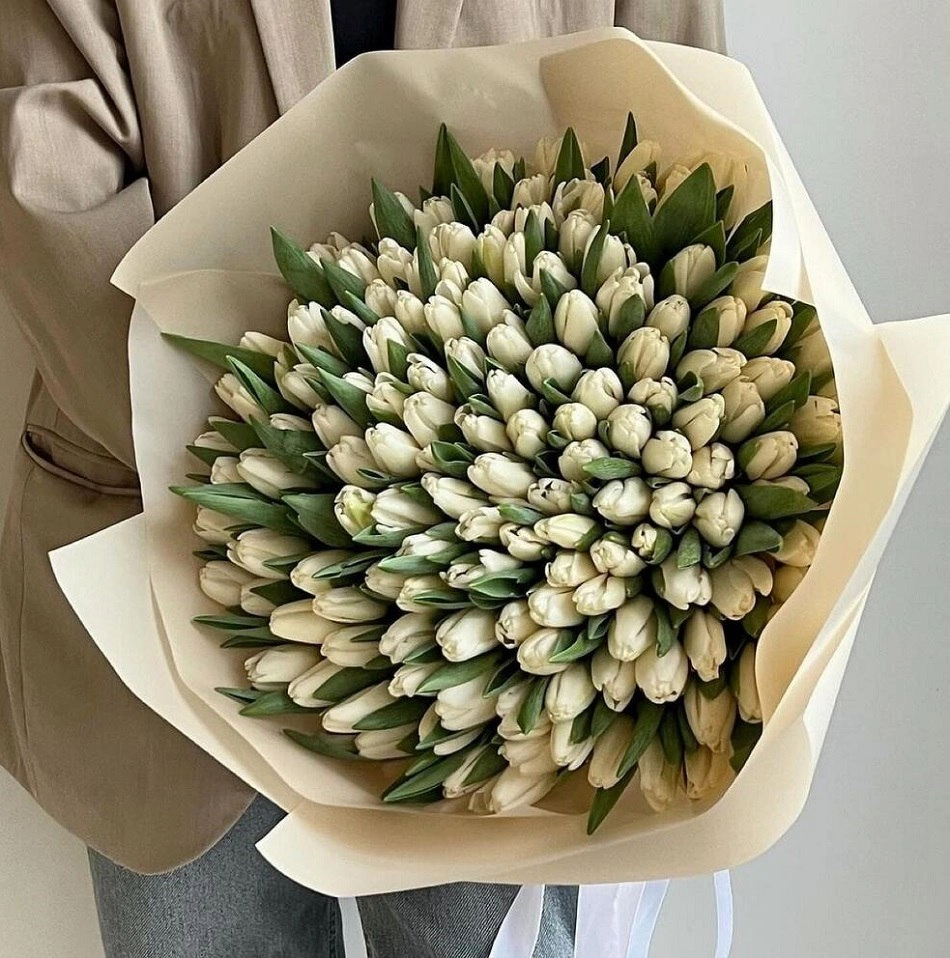 Состав букета: Тюльпан белый: 151 шт