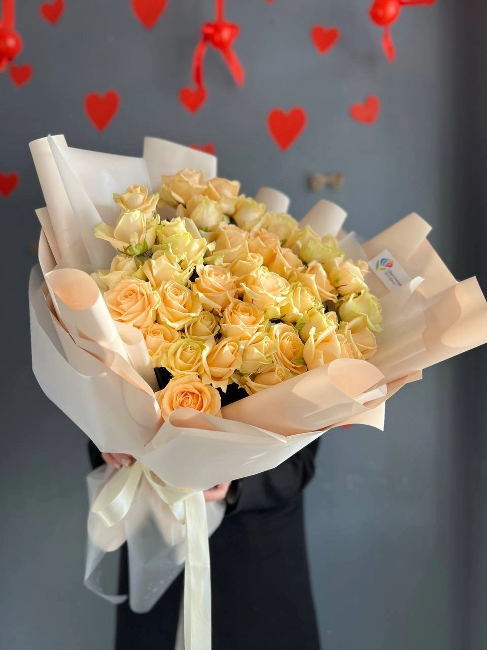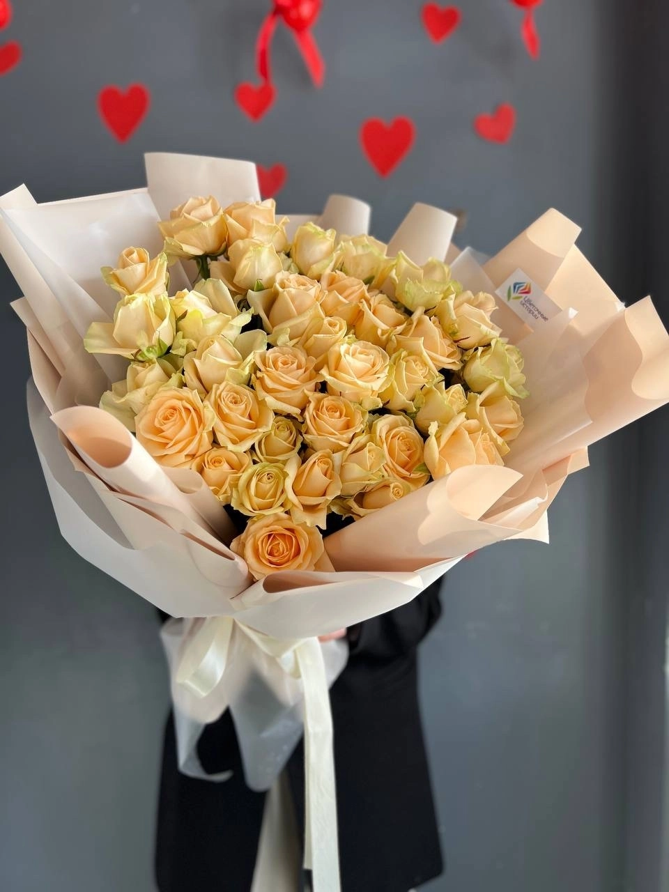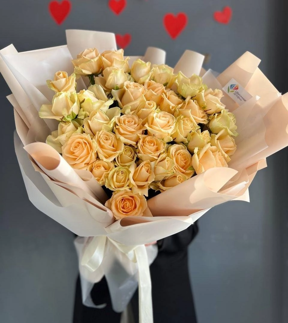 Гигант из 35 персиковых роз