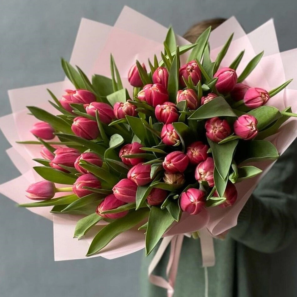 Состав букета: Тюльпан пионовидный: 35 шт