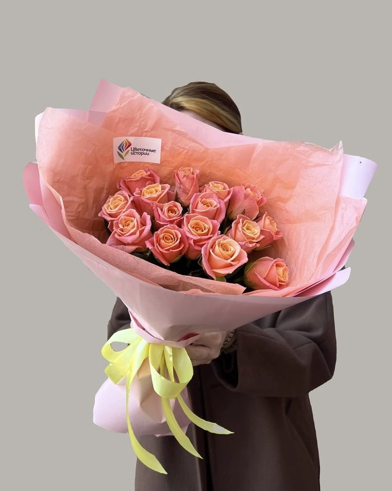 Букет из 15 коралловых роз 40 см