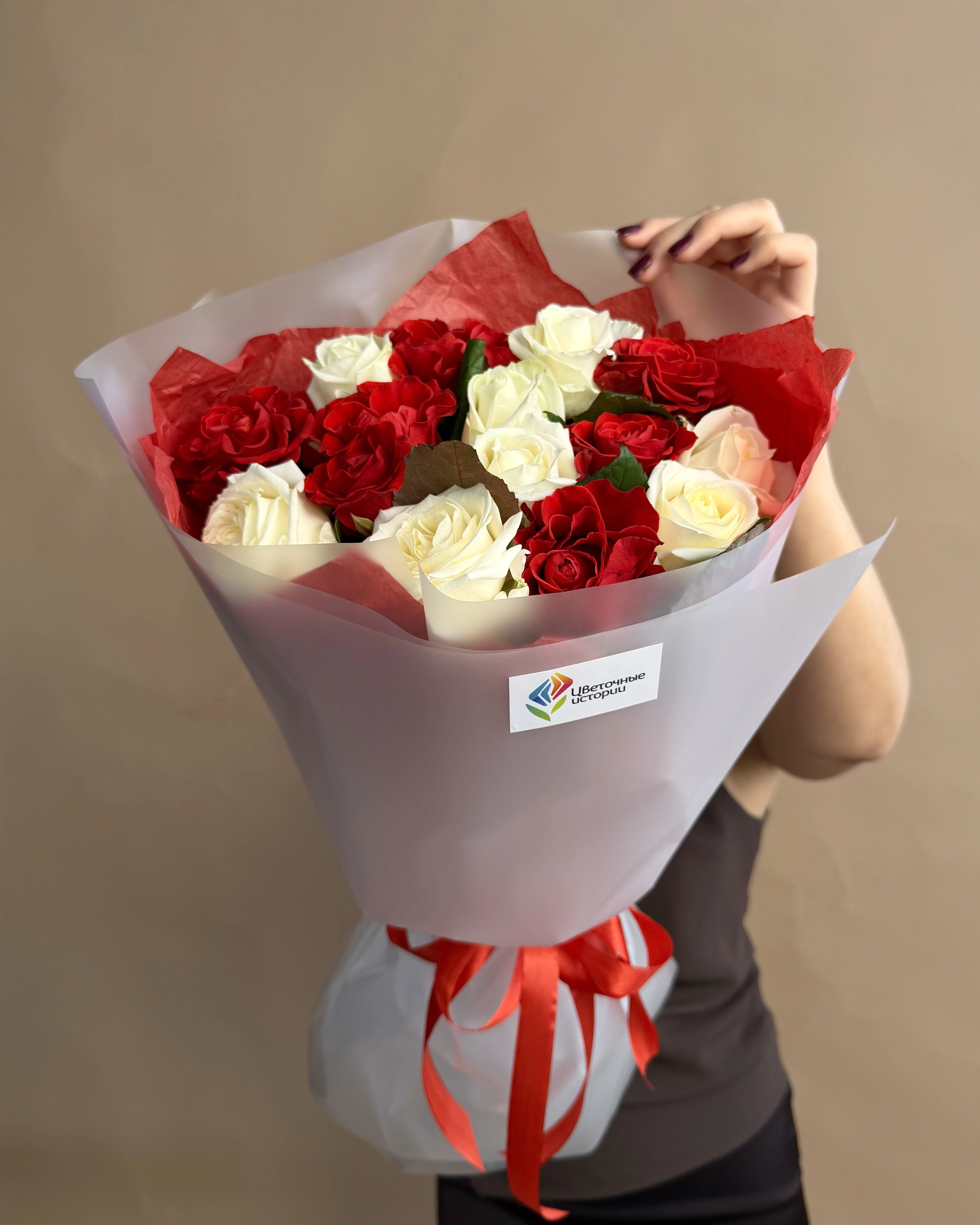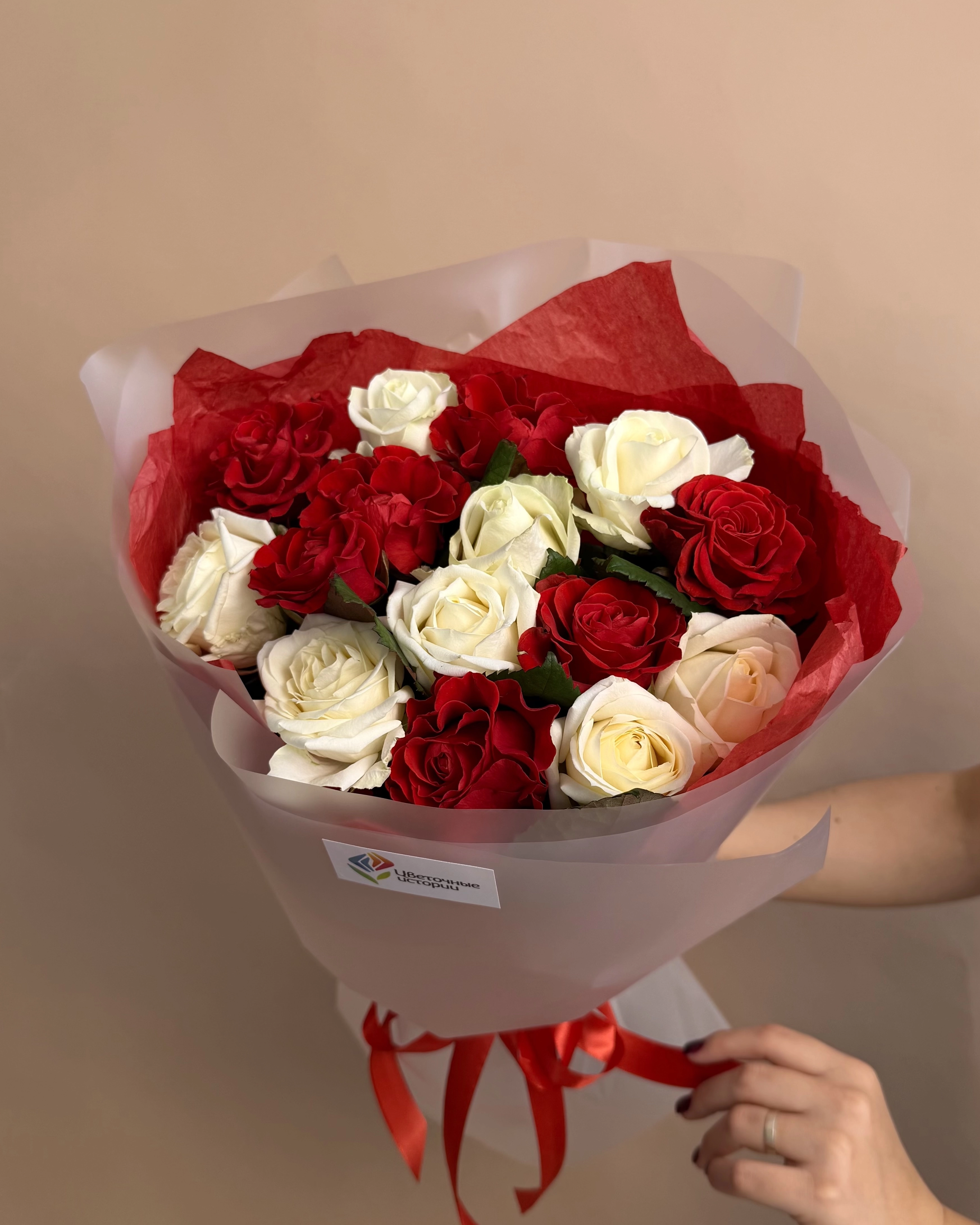 Состав букета: Роза 50/60 см (Россия): 15 шт
