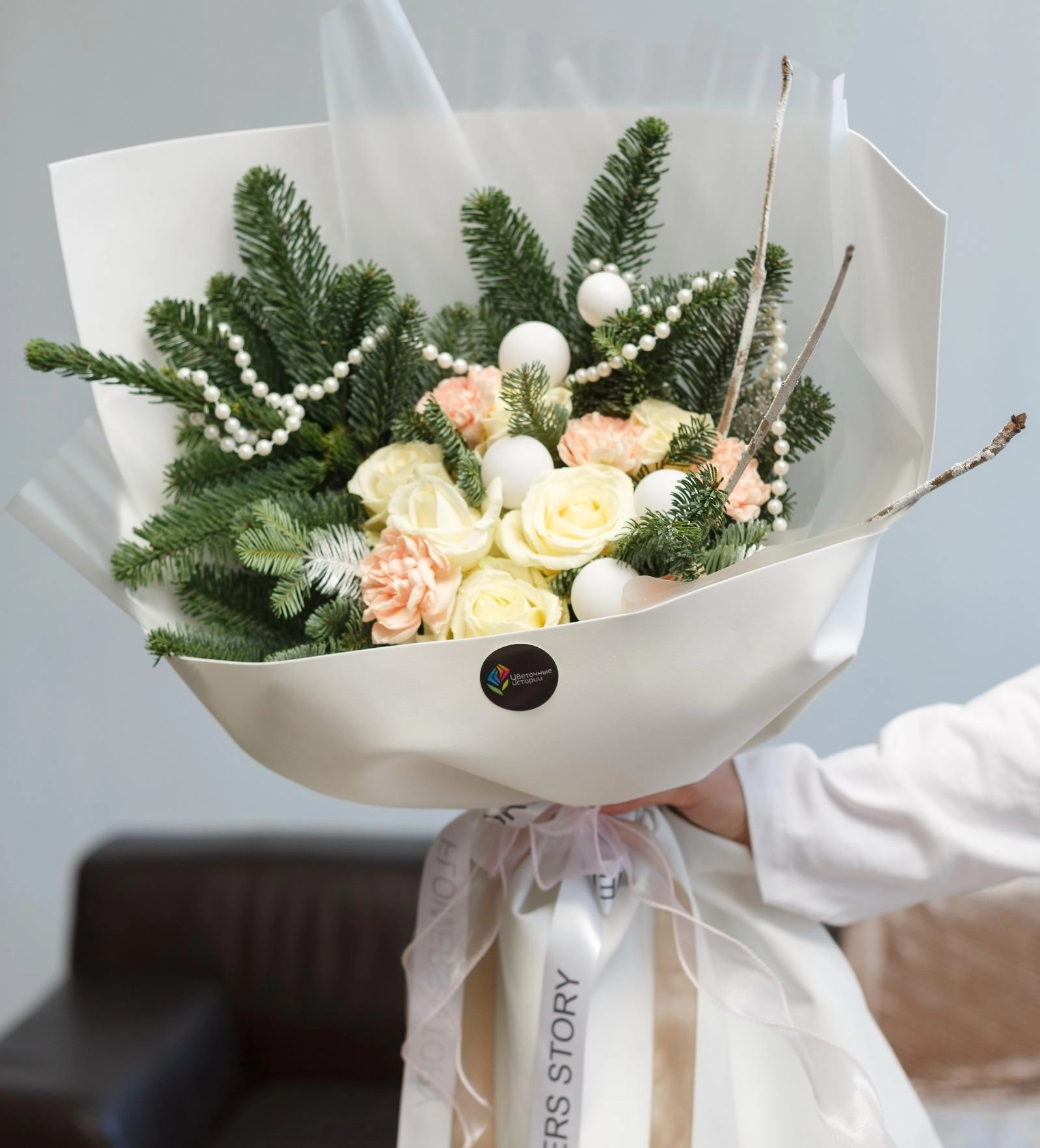 Ваши теплые слова мы запишем на фирменной открытке и приложим ее к букету
