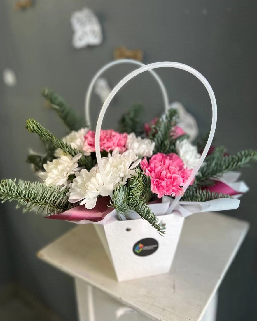 Состав букета: Нобилис: 0,3 шт, Хризантема кустовая: 1 шт, Диантус цветной: 3 шт