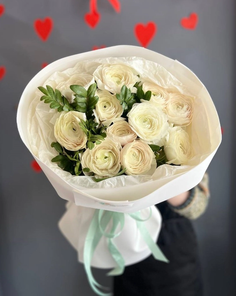 11 ранункулюсов с зеленью