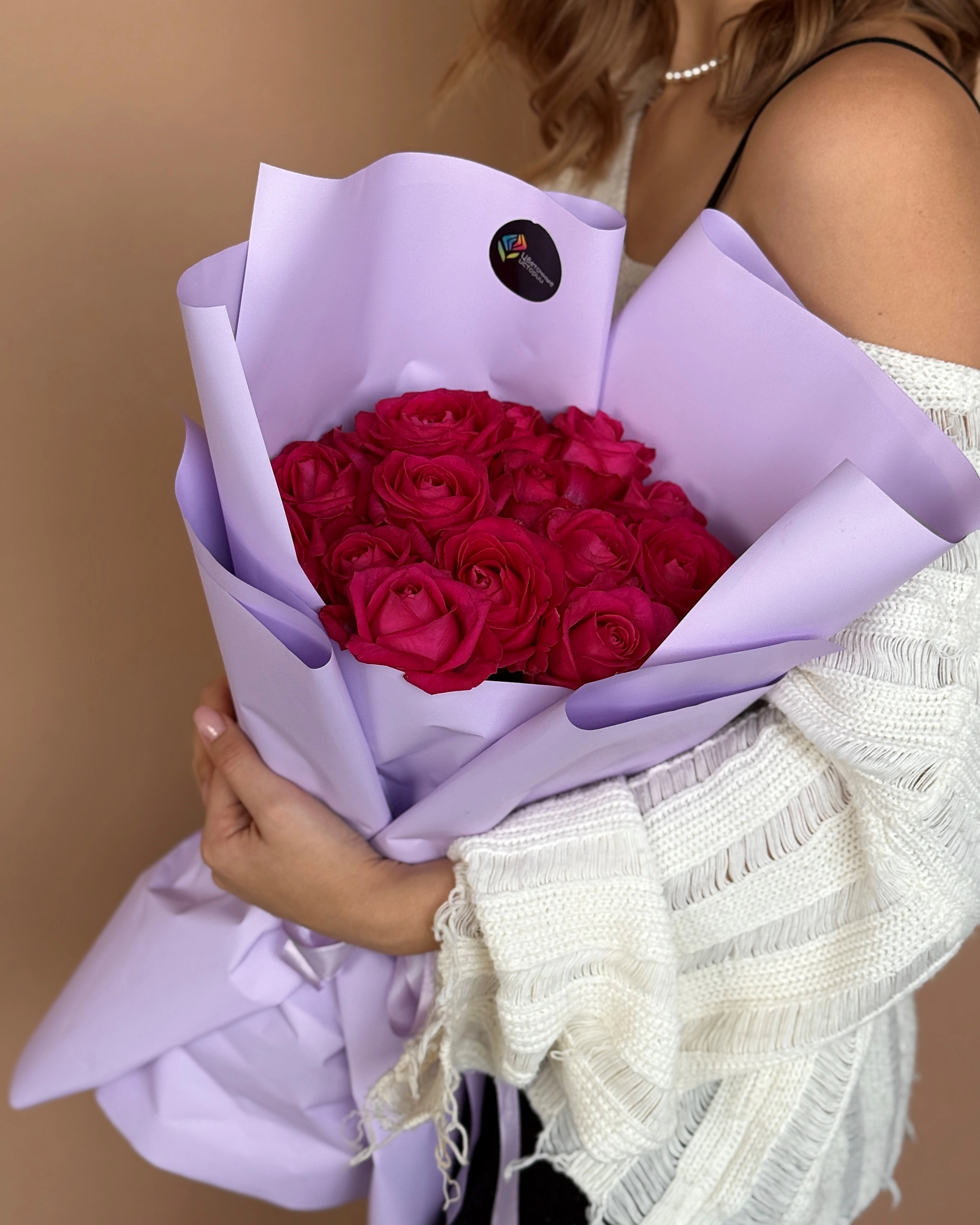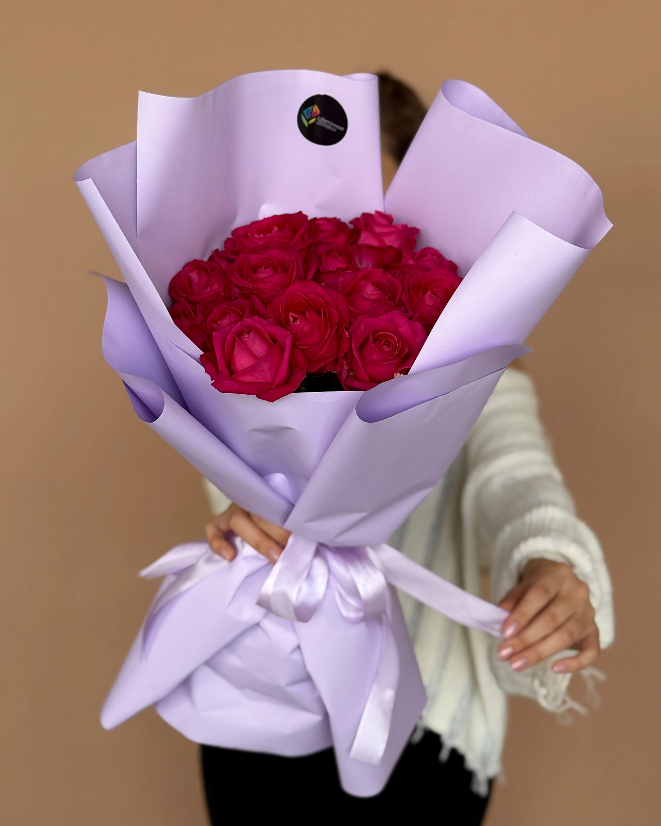 Состав букета: Роза 50/60 см (Россия): 15 шт