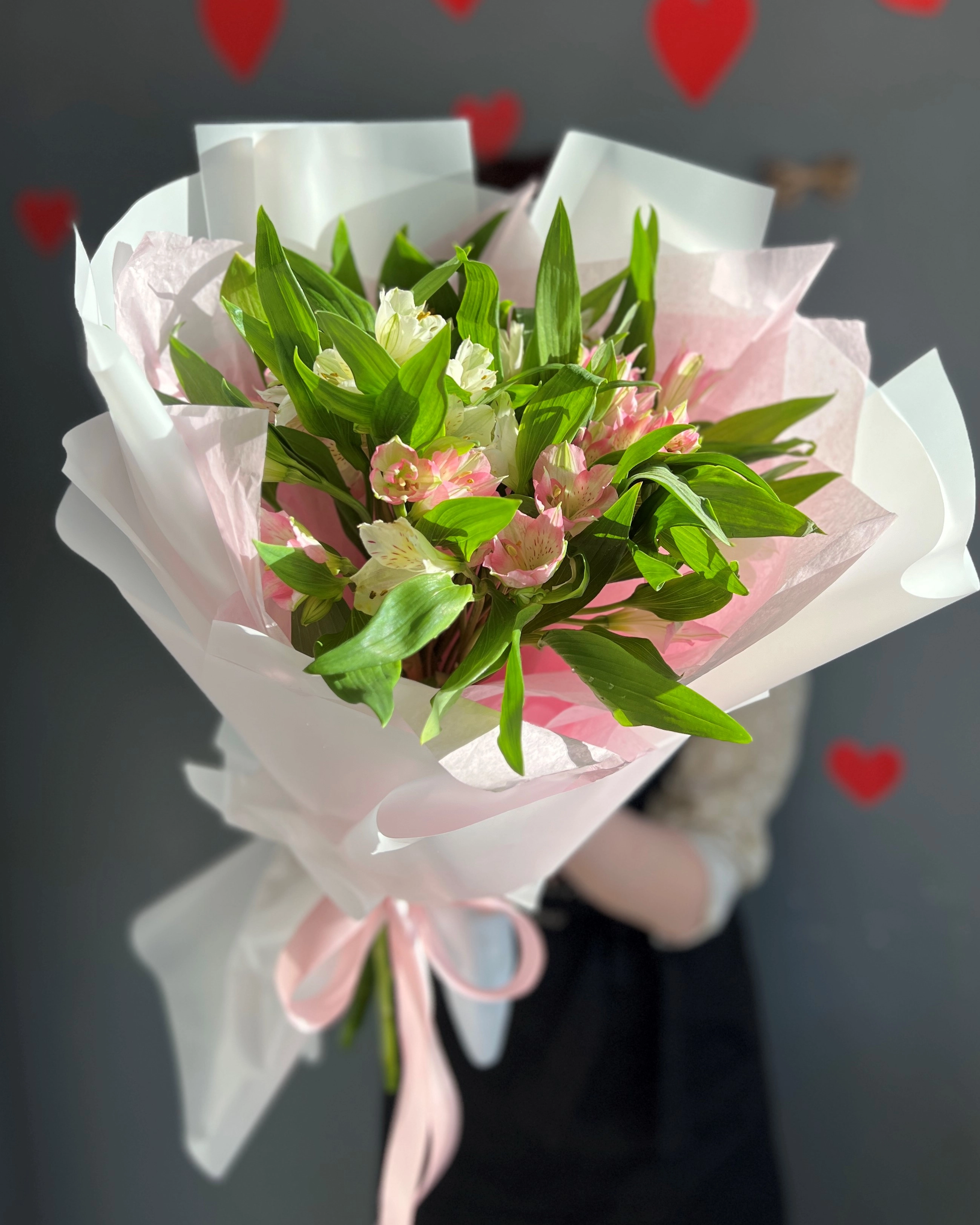 7 белых и розовых альстромерий