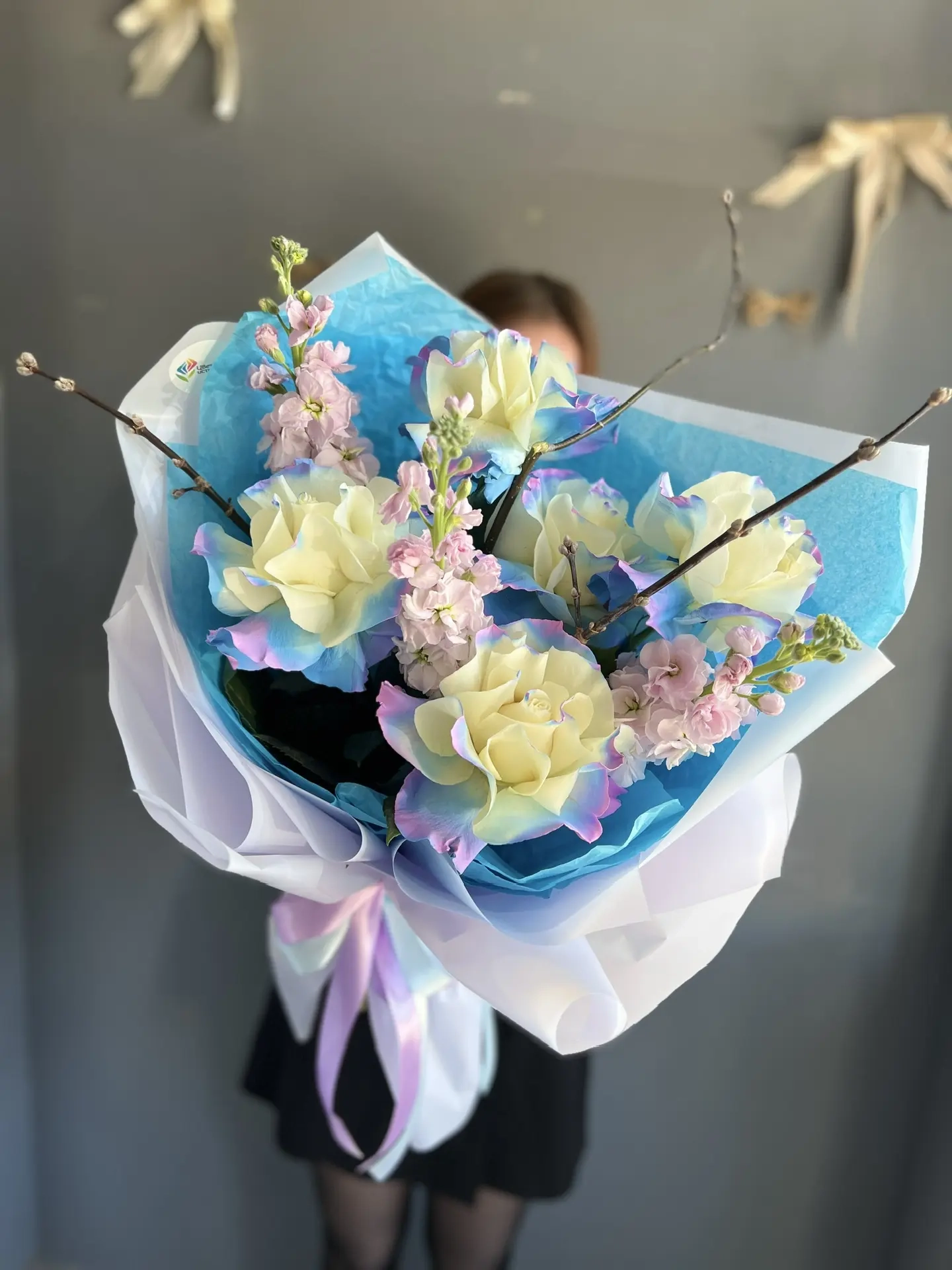 Состав букета: Роза крашеная: 5 шт, Маттиола: 3 шт