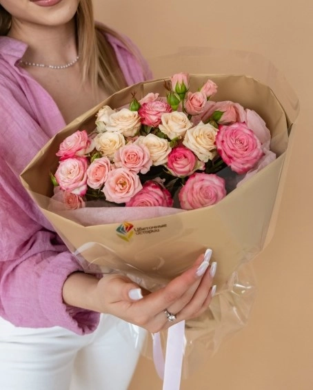 Букет из 7 нежных кустовых роз 40/50 см
