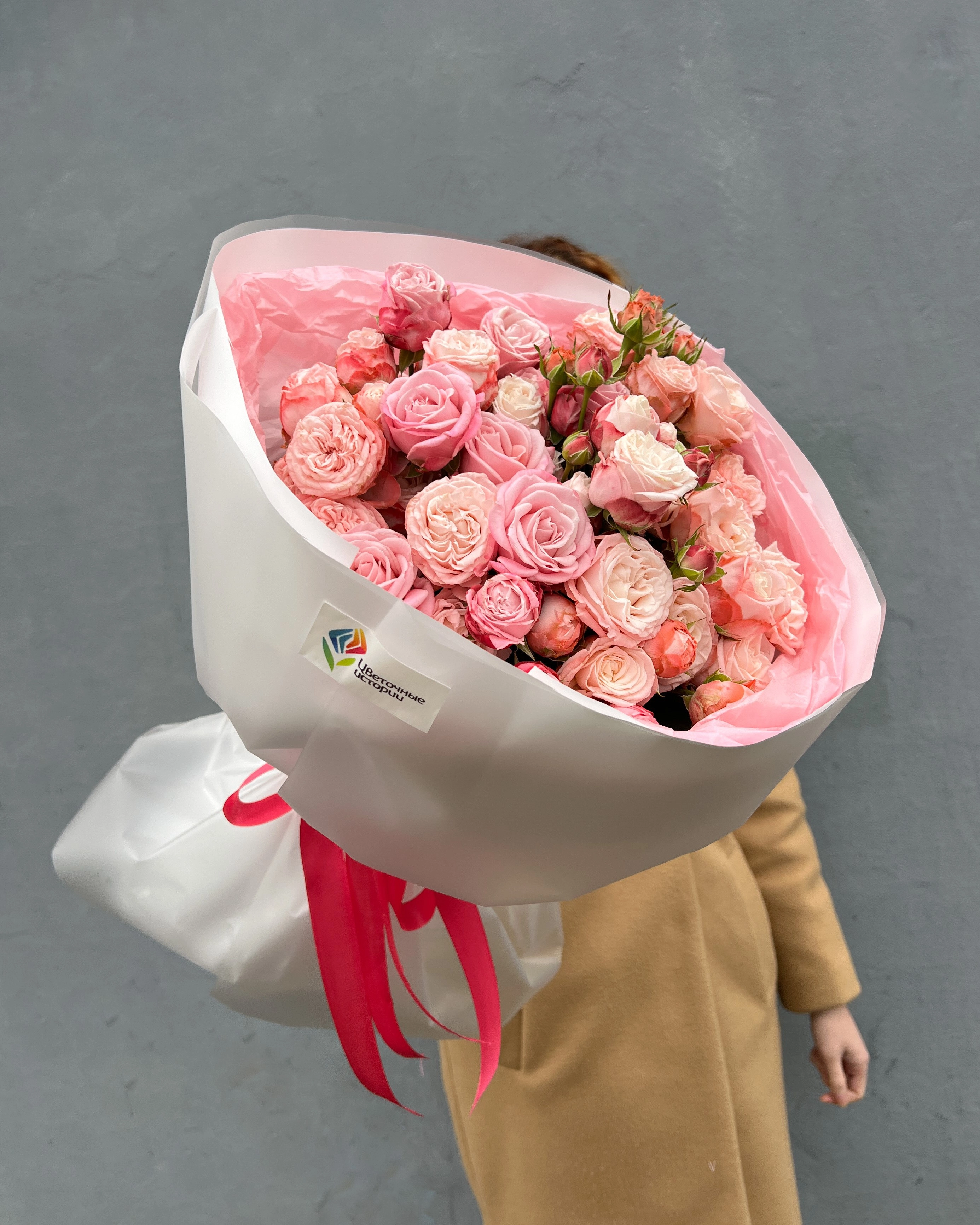 Монобукет из 11 нежных кустовых пионовидных роз 50/60 см
