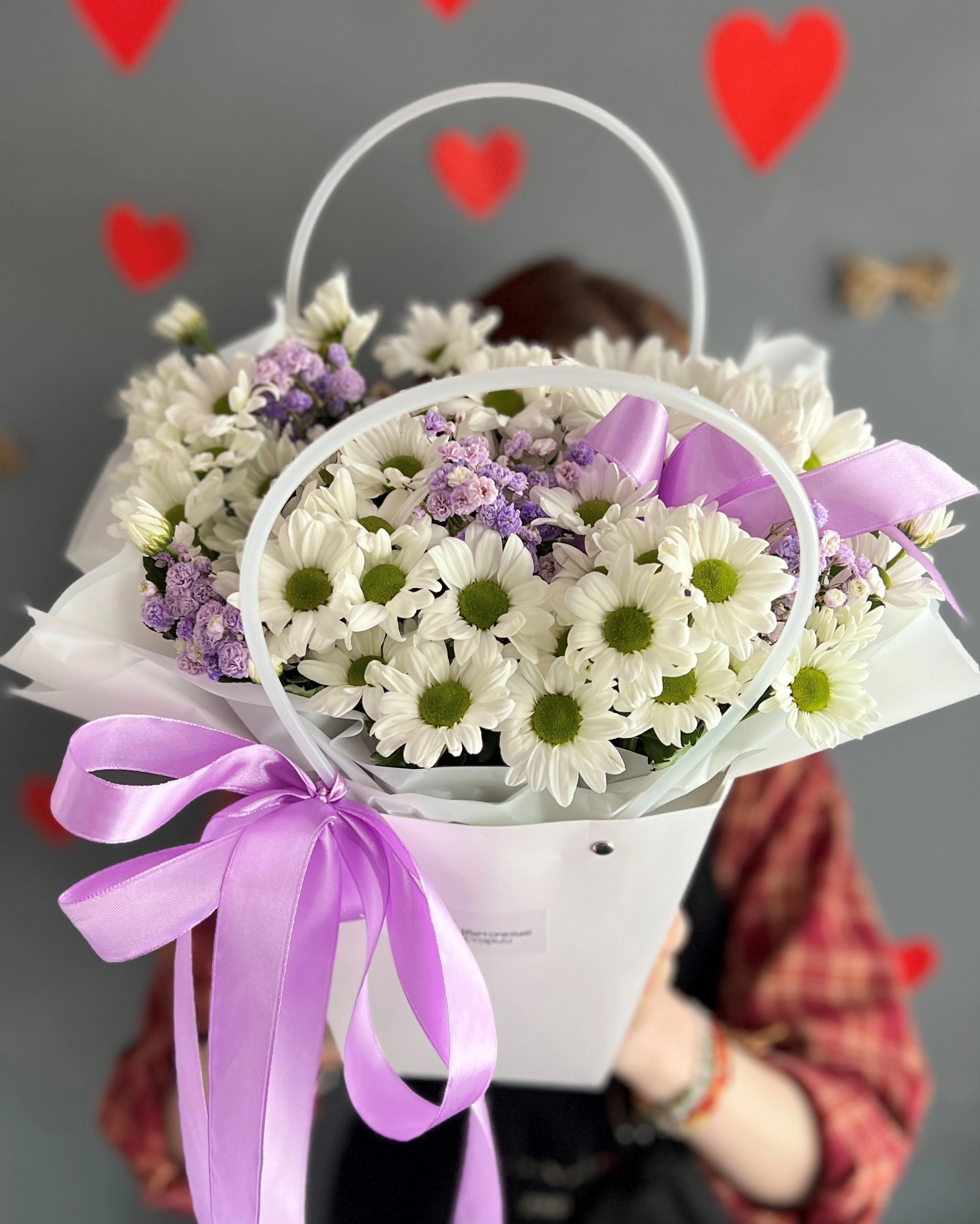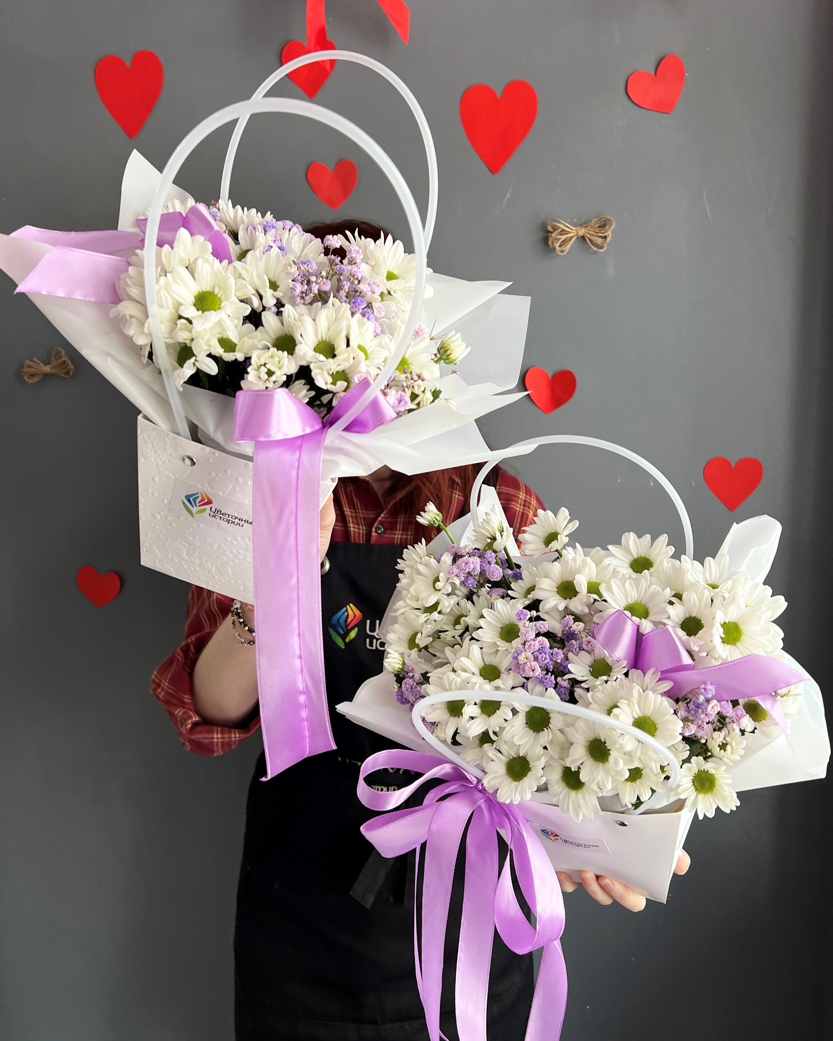 Упаковка: Пленка лайт: 0,5 шт, Лента атласная: 1 шт, Губка флористическая: 0,5 шт, Сумка для цветов: 1 шт