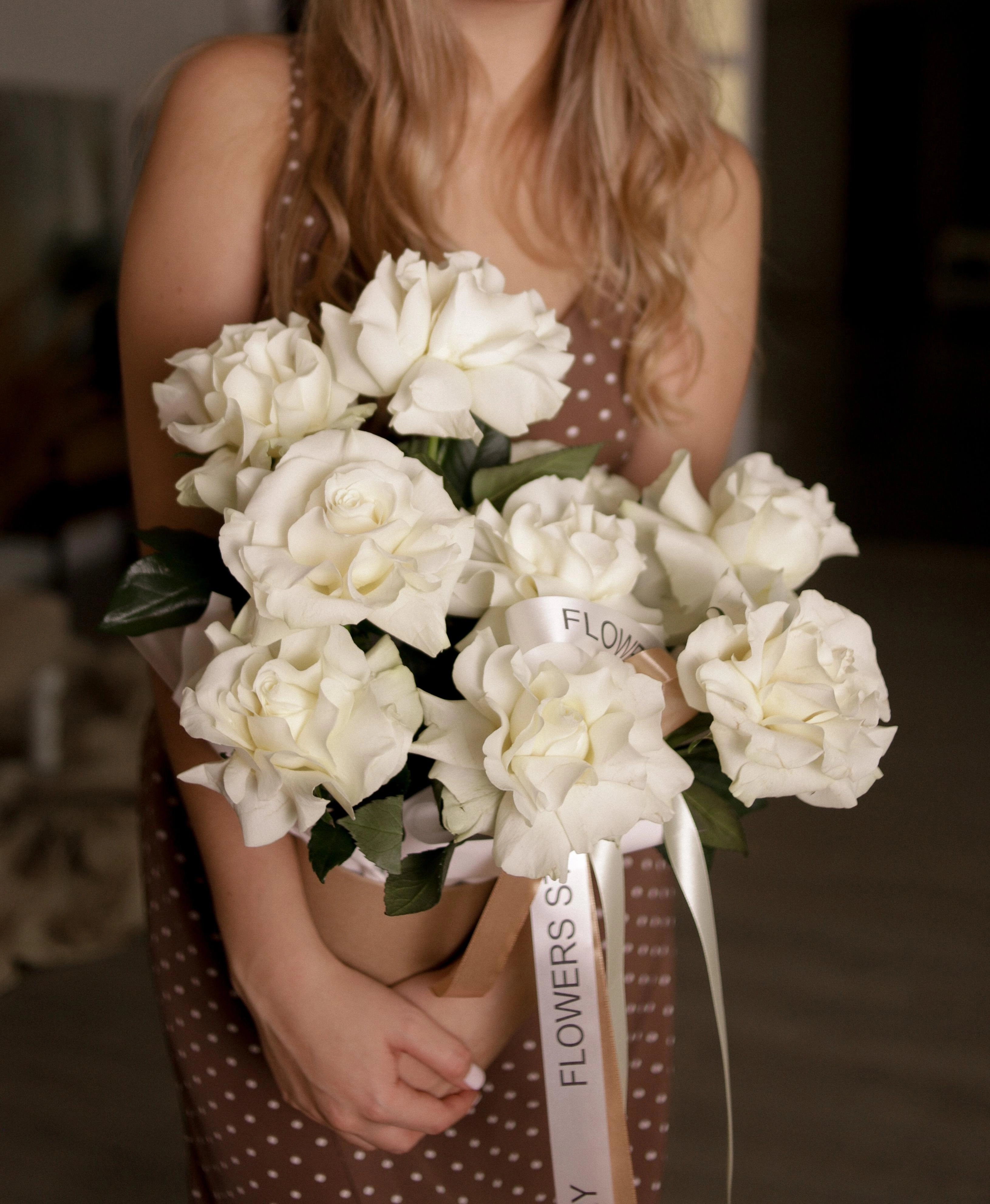 Белые французские розы в коробке М